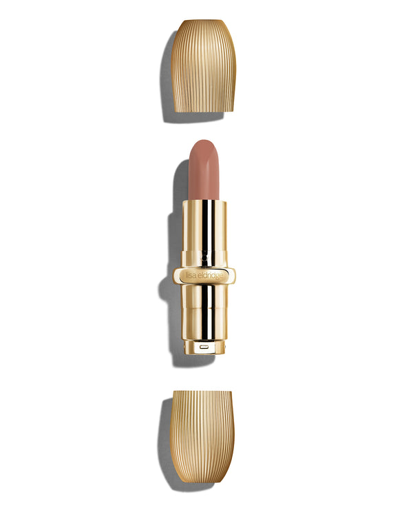 Neutral-beige coloured lipstick with gold casing and 'Lisa Eldridge' branding on a white background, featuring a CEW Beauty Award 2025 badge.
